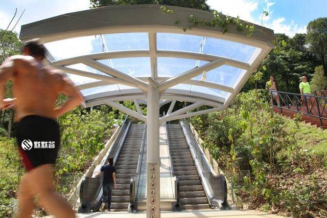 现在公园有直通山顶的电动扶手电梯,5分钟内就可以到达山顶,非常方便年长者与行动不便人士到公园高处亲近大自然