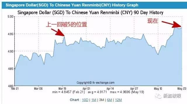 2010年8月,金融危机刚过经济复苏之时,汇率4.902011年8月,达到近年最高点5.282012年和2013年,新币汇率在5上下晃荡2014年起,新币又是猛跌的节奏,6-7月期间,还曾缓慢回到4.99左右,但终究未能破52015年8月,跌破了4.52016年6月,汇率4.88,一时新加坡工作党群情激昂