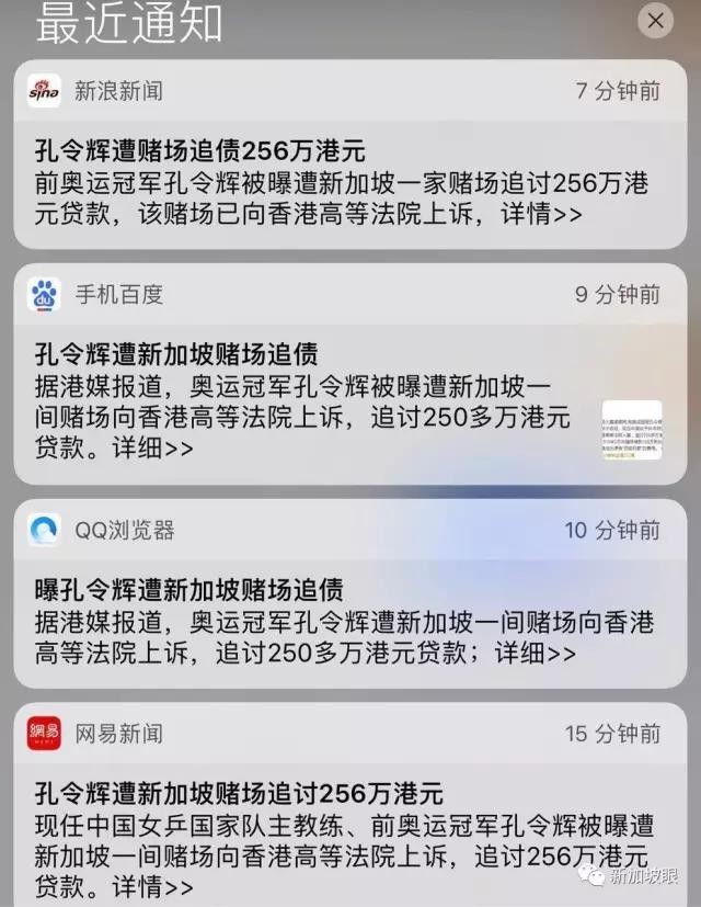 孔令辉欠新加坡金沙赌场250万,被追债上法庭!