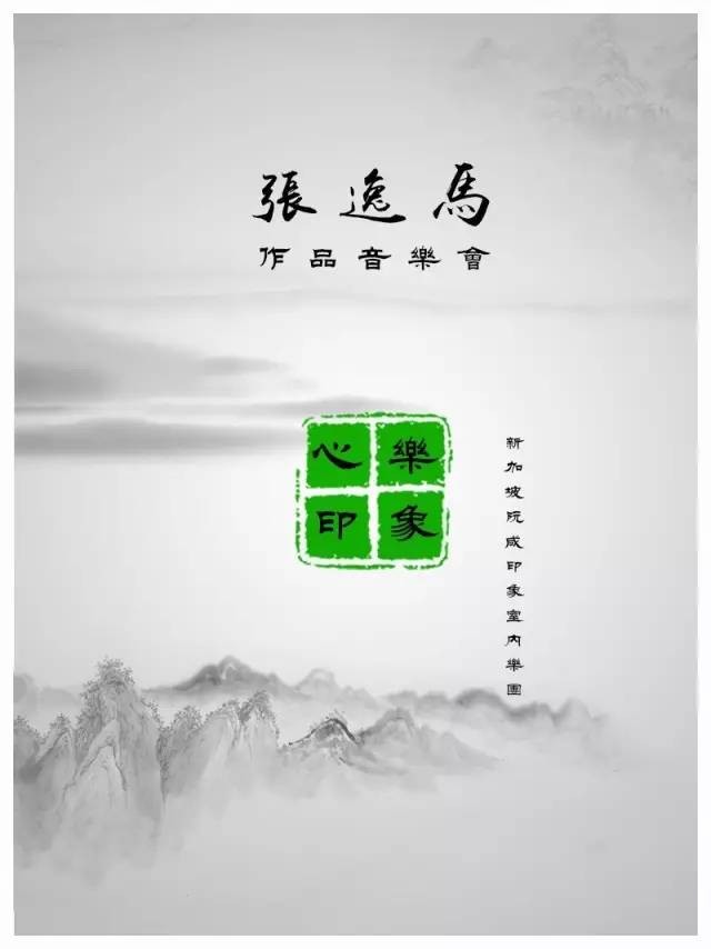 演出介绍:2017年6月25日,新加坡阮咸印象室内乐团,邀请中国著名作曲家张逸马(张磊)先生,举办“心乐 印象”作品音乐会。