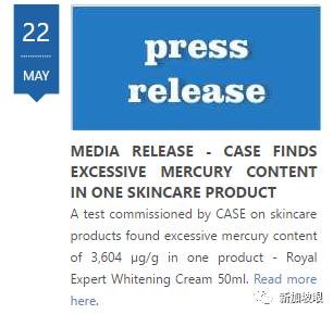 这一警告,离上次发布的“Royal Expert Whitening Cream” 警告才相隔两周,可见水银超标的化妆品在新加坡流传之广。