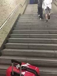 从地铁站出来,坐扶梯的时候,一次只能照顾一个箱子,所以先留一个在下面,坐扶梯把另一个运上去后放在旁边,再坐扶梯下去,取之前那一个。