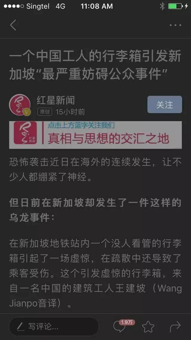 2个月前在新加坡发生的一件事,在中国猛然成为热门话题……