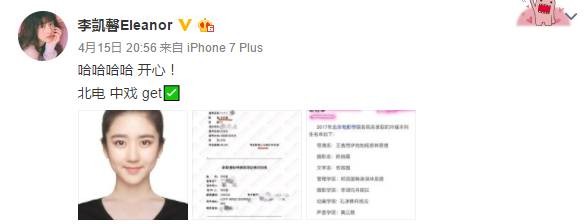 大概是为了以后继续在中国演戏并拓宽戏路做准备,原本在国际学校就读、中文属于“有限公司”水准的李凯馨,没有选择在新加坡本地求学,而是专门去中国参加高考,在艺考中被中戏、北电双双录取,还是第一名!