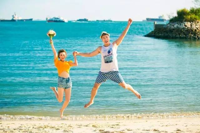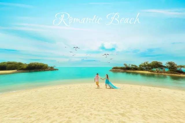 踏着白沙,吹着清爽海风许下一生一世的诺言