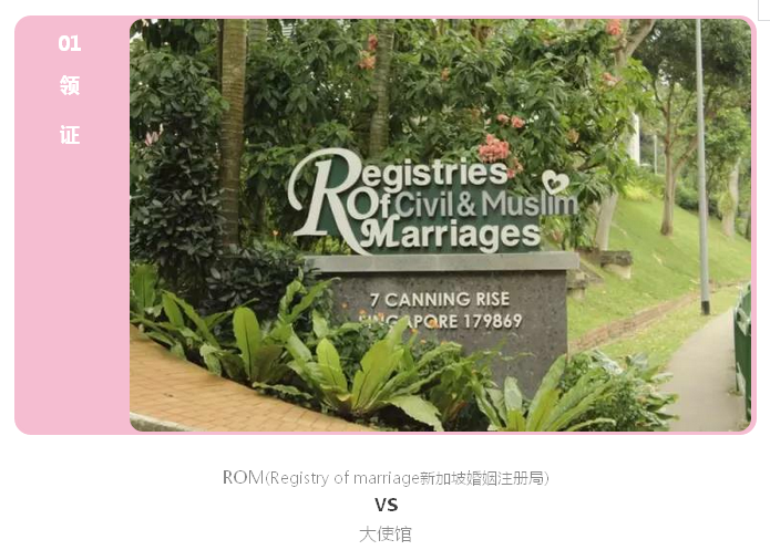 ROM注册:属于较西化简短的结婚仪式,新郎新娘表明结婚意愿后交换戒指并签字。很有西式结婚仪式的体验。ROM颁发一张Registry of marriage证书(有点像荣誉证书那种),如果将来回国使用需要重新公证或在国内补登记。比较适合看重结婚仪式,婚后倾向于留在新加坡生活的新人。如有一方是新加坡公民/永久居民,收费$26(2017年7月1日涨价!$42),如双方都是外国人,根据日期不同而收费$128-$298不等。