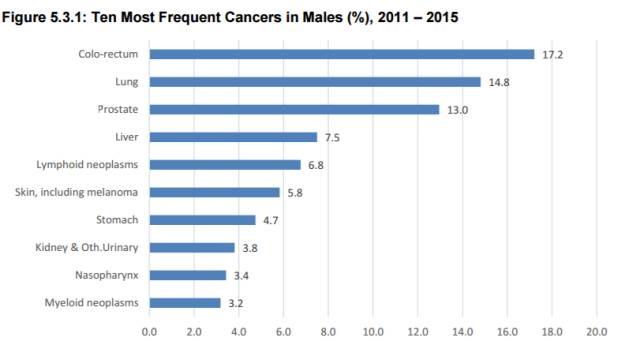 在2011年至2015年,新加坡共有2105名女性死于乳腺癌,4053名男性被诊断患有前列腺癌,其中795人去世。