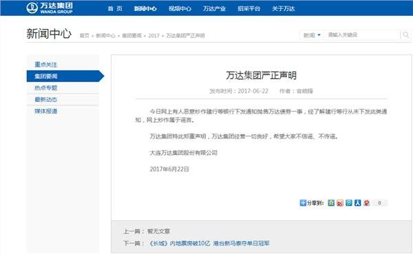 万达集团对此迅速发布公告回应~这是有人恶意炒作导致的。