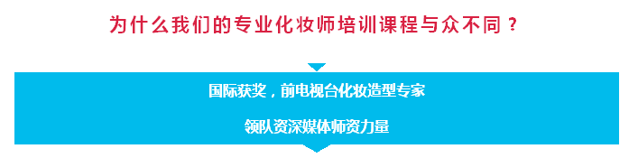 为什么我们的专业化妆师培训课程与众不同?我们的专家老师们屡获国际大奖,是目前活跃在第一线包括电视媒体广告等最时尚最有经验的化妆造型专家们: 国际获奖,前新加坡电视台化妆造型专家Grace Meng 领队的资深化妆造型导师们,和前电视剧发型顾问Emily Cheng联袂执教各种时尚,媒体及新娘化妆造型。导师们不仅曾屡获国际大奖,而且曾受邀在各种选美活动和化妆活动作为嘉宾和评委。他们亲自己教授分享多年媒体化妆造型经验,瞬间掌握技巧精髓,加入我们的化妆造型课程,零基础学习!完成从菜鸟到美妆达人的完美蜕变!
