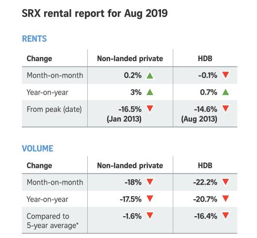 SRX在今天发布了最新的数据,对八月份本地房屋租赁市场进行分析:非拥有地私人住宅和组屋的出租量都有所下降。私人公寓租金小幅上涨,组屋租金环比略有所下降。
