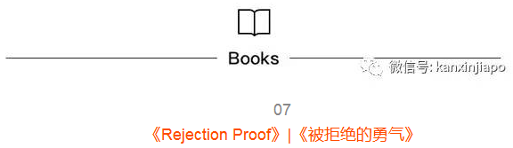 这本书是page-turner,就是一旦开始读就停不下来的书,作者做了普通人不敢做的事情——亲身体验被连续拒绝100次,目的是克服被人否定和被拒绝的恐惧,这种方式竟然让他敲开了命运的大门。他总结的方法真可以运用到育儿当中。