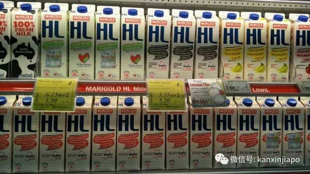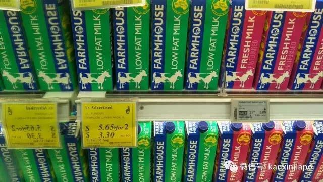(新加坡)普通牛奶 一盒3.20新币,两盒5.55新币;低胆固醇型牛奶 一盒3.50新币,两盒6.25新币。