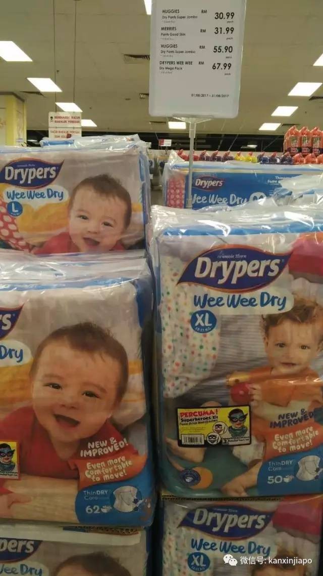 (新山)婴儿纸尿布,每包价格从30.99马币到67.99马币不等,也就是约合10~20新币