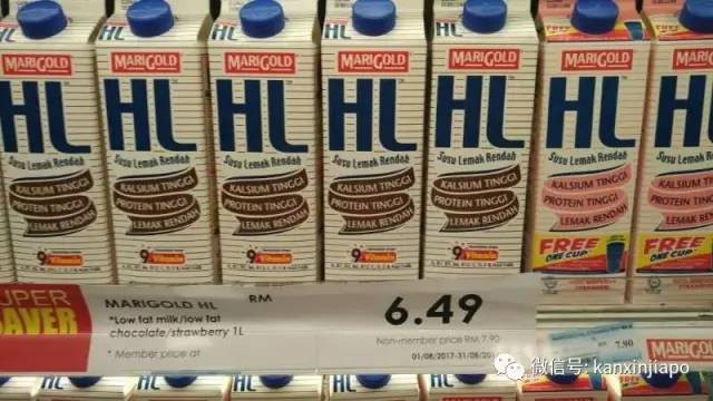 (新山)HL牛奶 一盒6.49马币,约合2.06新币