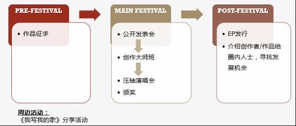 4)压轴演唱会压轴演唱会将会在9月30日,晚上7时30分,于*SCAPE的Ground Theatre盛大举行,届时将由专业评审选出优胜作词、作曲、演唱作品和通过网上投选的最高人气。优胜作品将不分排名,旨在推广本地好音乐。