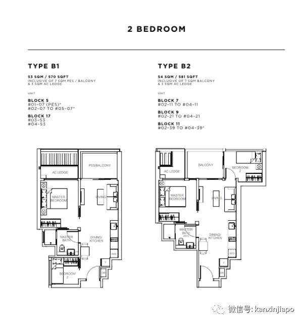 二居室户型:套内面积53平方米(570平方英尺)至67平方米(721平方英尺),平均售价$2178新币每平方英尺,整套售价$126万起;