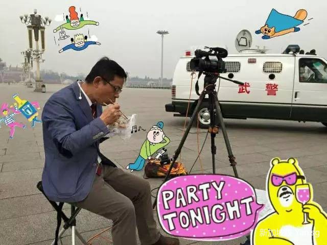 ▲北京雾霾下的午餐。摄像师把这张照片悄悄发到Facebook上之后,同事们开始纷纷转发,其中一位同事Phoebe还意犹未尽进行了加工。