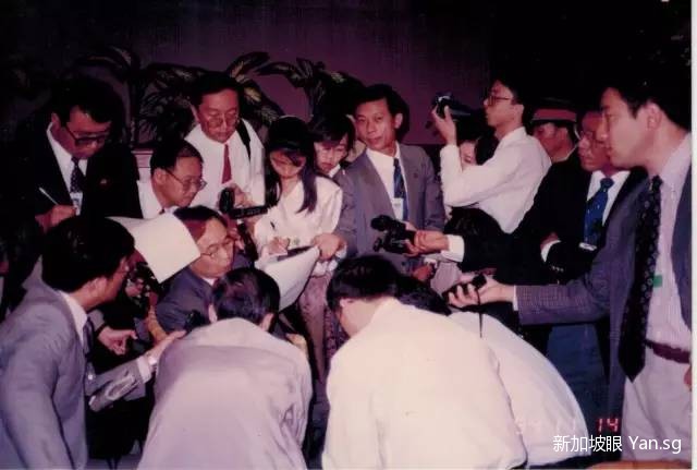 ▲江泽民和克林顿在印尼茂物会谈之后,外交部副部长刘华秋向记者们“吹风”。找得到我吗?