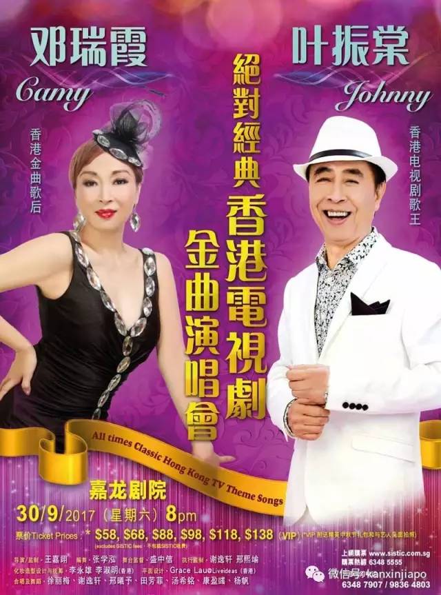 这个中秋佳节,让我们尽情陶醉在无数最爱的香港电视剧金曲中!被誉为唱最多香港电视剧主题曲的实力派男歌手叶振棠Johnny 将首次和香港金曲歌后邓瑞霞Camy 携手合办《绝对经典香港电视剧金曲演唱会》。