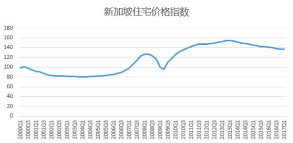 新加坡房产的抵押贷款市场是亚洲最成熟的贷款市场引领者,从1997年开始,贷款总值持续增长,从1990年占GDP的8%,至1996年GDP的15%,至2006年GDP的27%,至去年2016年的46.8%,截止2017年的4月,未偿付的住房贷款共达1933亿新币。新加坡政府的另一个调控利器则是对土地供给市场的控制,持续走低的贷款利率在一定程度上利好了房产市场,但是尽管如此,由于政府在土地供给上的管控,抑制了市场的需求。