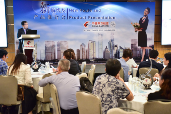 推介会现场,首先由新加坡营业部总经理周成先生致辞,对东航的现状以及东航中新航线进行了介绍。之后由东航新加坡营业部销售经理孙玲俐女士做了新航线产品推介,并由中国旅游局驻新加坡办事处主任助理杨柳女士对东航新增的泉州和杭州进行了精彩的城市旅游资讯演示。在推介会的第二部分,由东航客户代表对东航目前的航线网络、产品和服务进行了详细的介绍,并通过有奖问答的方式让来宾对我们的产品有了更加深刻的认识。整场推介会来宾情绪高涨,听得认真,答得准确,整场活动在热烈、轻松、愉快的气氛中进行。通过此次推介会,东航新加坡代理对东航的产品有了更深刻的了解,将有助于进一步提高代理销售东航产品的积极性。