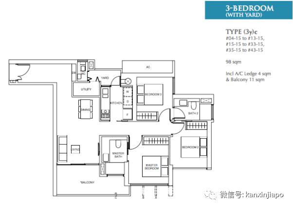 最低价三居室公寓#02-04仅售162万(1,076平方英尺);