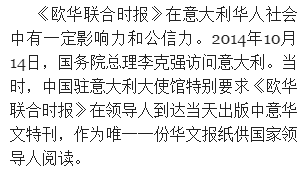 后一态度持有者自豪地举例,2014年李克强访问意大利时,中国驻意大利使馆特别要求某报“在领导人到达当天出版中意华文特刊,作为唯一一份华文报纸供国家领导人参阅”。该报社长兼总编辑认为,“这是我们面临的第一道重大考题”;该报“特刊出来后,反响很好,外交部和中国驻意大利大使馆给了我们很高的评价”。