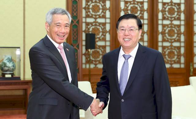 张德江20日会见新加坡总理李显龙时时说,新加坡是中国特殊的友好邻邦。两国建交以来,保持了密切沟通与合作,双边关系取得长足发展。习近平主席提出的“一带一路”倡议为中新关系发展带来了重大历史性机遇,双方要扩大各领域合作,深化人文交流和地方合作,使中新与时俱进的全方位合作伙伴关系始终充满生机和活力。中国全国人大愿加强与新加坡立法机关友好交往,继续为两国合作营造良好法律和制度环境,不断增进两国人民的友好感情,为深化两国关系发展作出积极贡献。