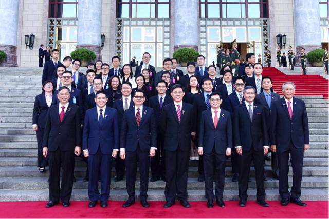 值得一提的是,陈振声19日晚上在自己的脸书(Facebook)传了一张照片,是陪同李显龙总理访华的随行部长和官员,趁总理和夫人去出席检阅仪式时,在人民大会堂外拍的。