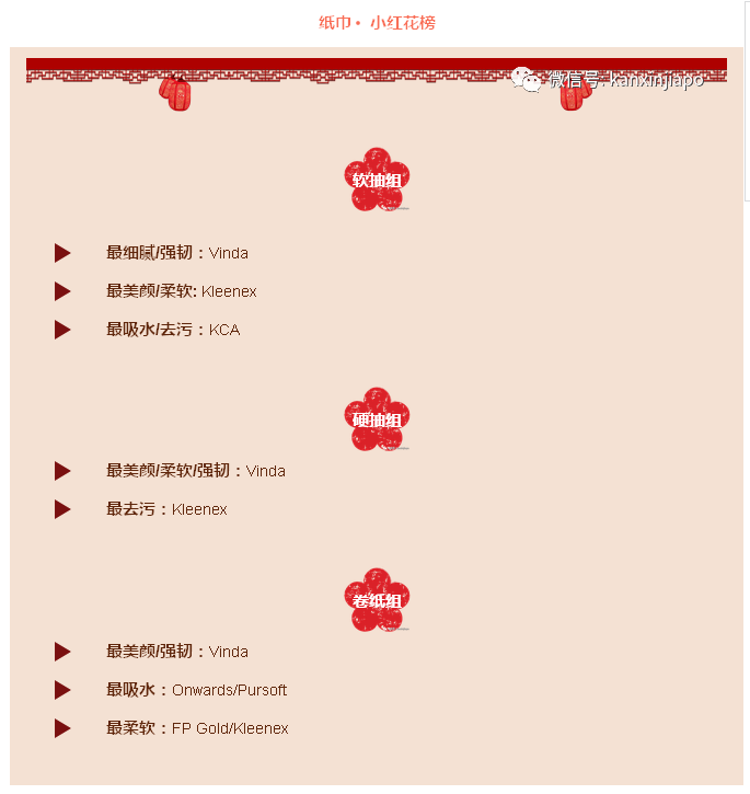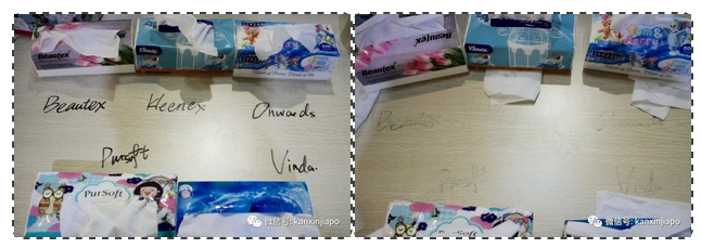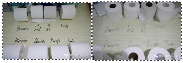 参加测评的纸巾种类,分为硬抽、软抽和卷纸三组: