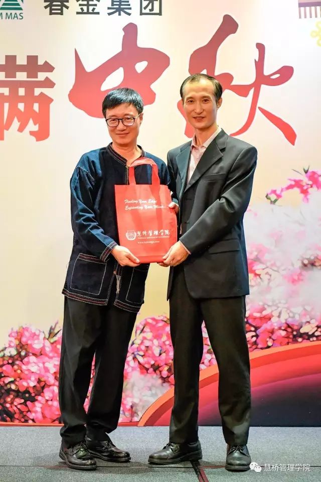 慧桥管理学院的院长李志明先生向赞助人颁发纪念品并深深感恩。