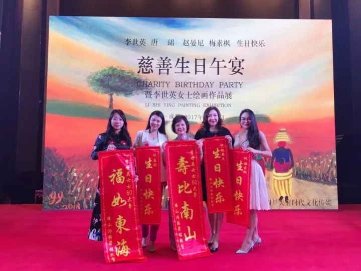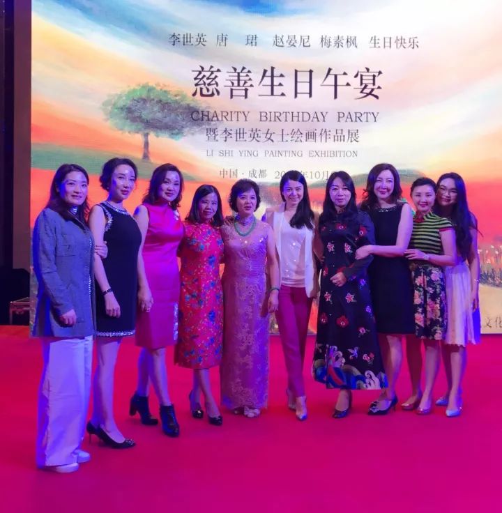与李世英的绘画作品展同时进行的,还有慈善生日午宴,四位“寿星婆”均为天府会会员。