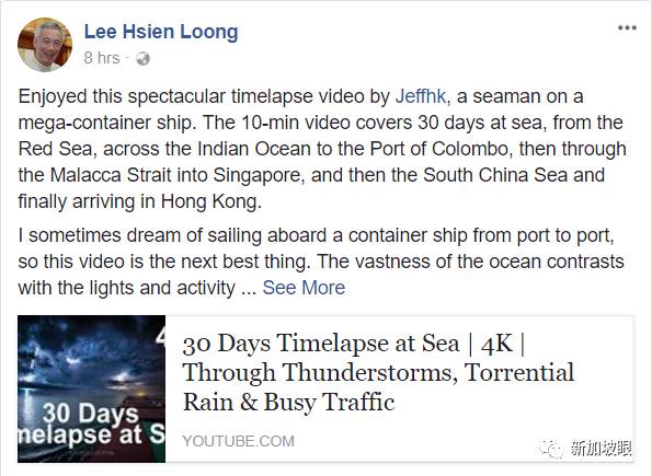 新加坡总理李显龙今天在脸书跟网民交心,说有时候会梦想自己坐上集装箱船出海,从一个港口到另一个港口!