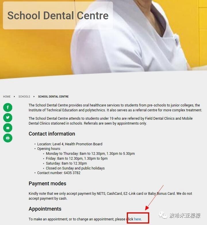(1)登陆网站:https://www.hpb.gov.sg/schools/school-dental-centre,或致电:64353782(如果打电话,后面都不需要看了),按照步骤一步步填好表格提交即可。