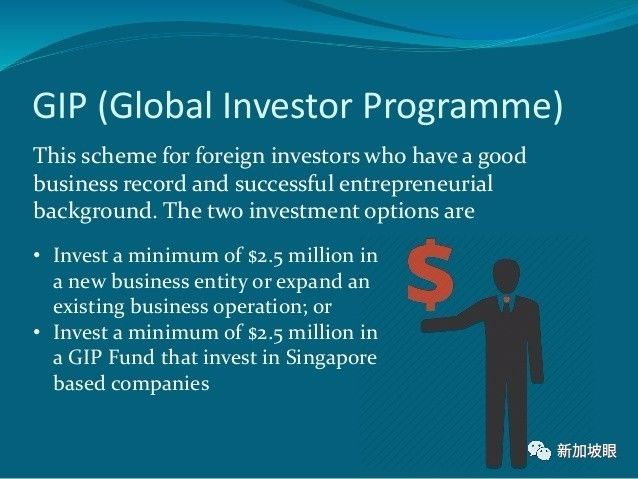 至少投入250万新币,在新加坡创业建立新的商业实体(或扩充现有的商业运营),也可以是参股其它公司,或者放进政府基金,让基金帮你投资以新加坡为基地的初创企业。