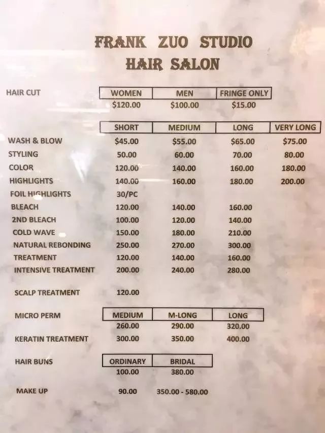 ▲“左刀手Frank”剪烫染发价目表,这样的高端造型定制,可是没有折扣的哦