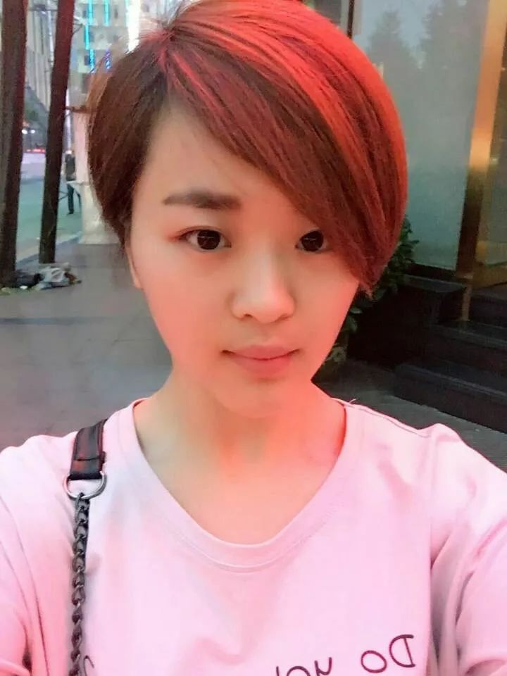 ▲学生妹的侧分短发,估计这走在学校里回头率蛮高。