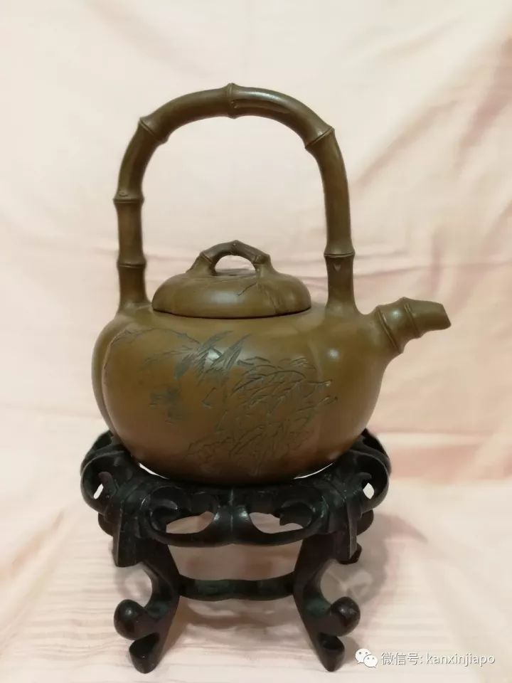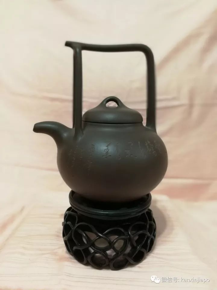 在一百多个茶壶中,罗炳鑫最为珍藏的是一个清朝时期的宜兴茶壶,价值超过10万新币。他说,用老茶叶在这个茶壶里一泡,恰当的水温可以让茶壶里的水呈现不同状态的气泡,茶的味道自然就有些与众不同。