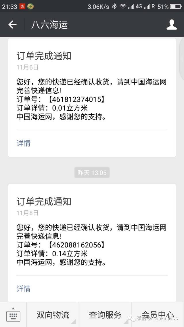 3、团长只要和分行客服确定提交发货日期,如11月16日10-12点,到时客户服务开通特价通道,全部团员在这个时间段集中提交发货,填写同一个新加坡收货地址,系统自动按80新元/立方米结算。