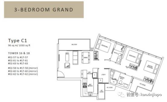 注:新加坡无公摊面积一说,以上面积为使用面积。
