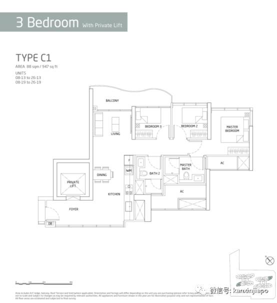 目前主推户型为三室一厅,使用面积88平方米(947英尺),最低价格$142.3万新币起。也许您很难想象,您只投资不到150万新币,就可以拥有一个配备有私人电梯的私人公寓,而且公寓的管理费也不高,确实是千载难逢的机会。户型南北走向,无西晒。客厅与餐厅分开,充分利用过道,并配备弧形阳台,宽敞明亮、豪华大气。三个房间均方方正正,并配备衣柜,其中一间还有弧形阳台。毋庸置疑,这是您的最佳选择,您可以选择自住,享受360度的视觉盛宴,乘坐私人电梯的超凡感觉,得天独厚的区域交通。您也可以选择出租,轻轻松松出租,获得可观的回报。