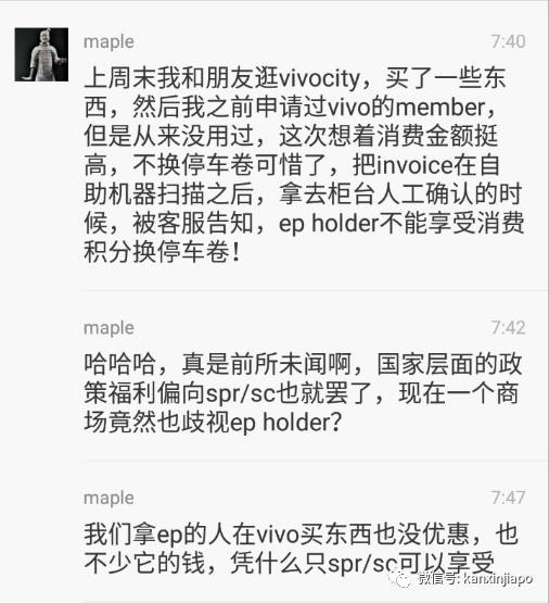 这名读者拿的是就业准证(Employment Pass, EP)。他不明白为什么一个商场要歧视EP Holder,同样是消费者,为什么新加坡公民和永久居民才能享受优惠?