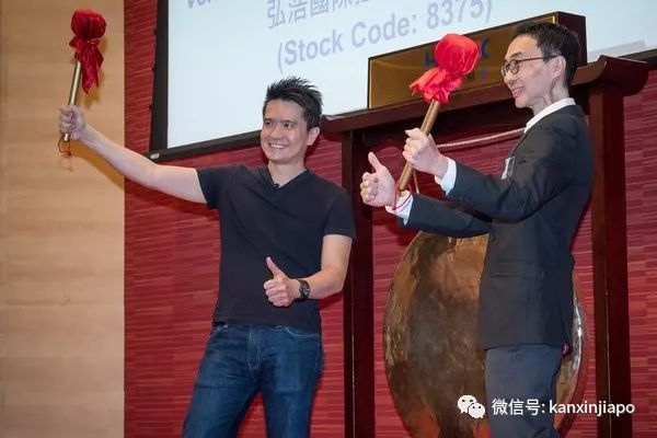 ▲陈民亮(左)和雷蛇非执行董事林嘉林,在港交所敲锣宣告上市。