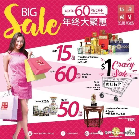 每到年底,新加坡的各大商家都纷纷推出各种优惠促销活动,今天给大家上干货,奉上裕华国货年底促销list:特色美食疯狂$1特卖!!服饰四折,珠宝、木雕、家具最高五折,补品也有八五折呦!