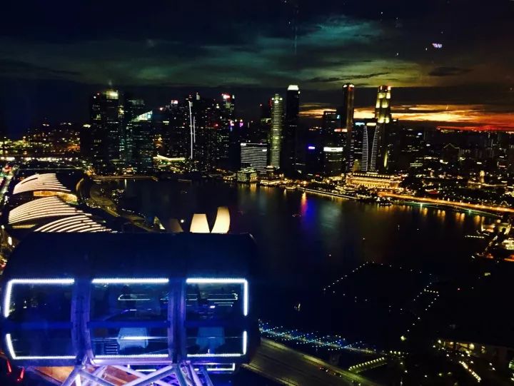 新加坡观景摩天轮一直都有亚洲首创的星空漫宴飞行旅程,在这里,你既能享用美味大餐,又能在高空欣赏美丽夜景。