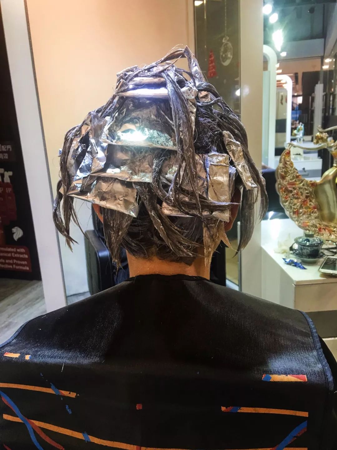 最重要的一步,就是上色!上色越细致,染出来的颜色就越有层次。这个步骤大概用了1个小时,是我这么多年染发用时最长的一次,Mike可以说是很细心了!