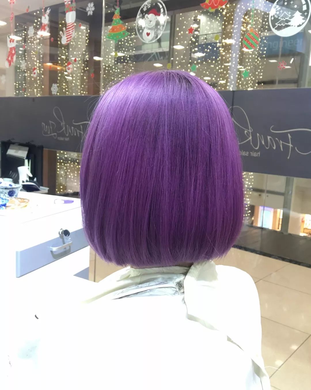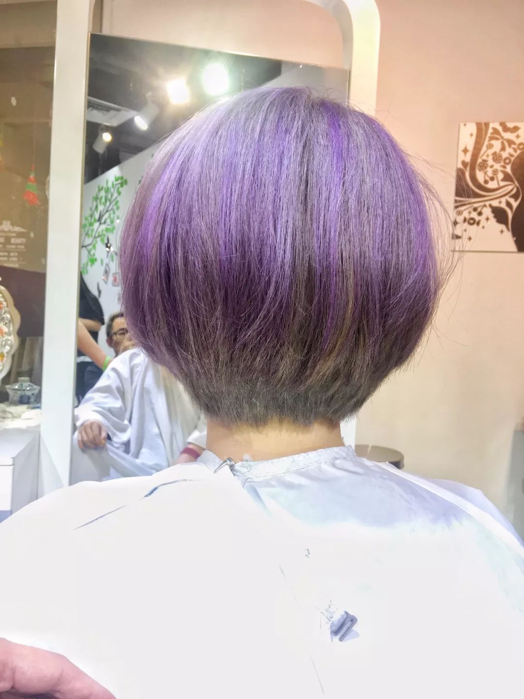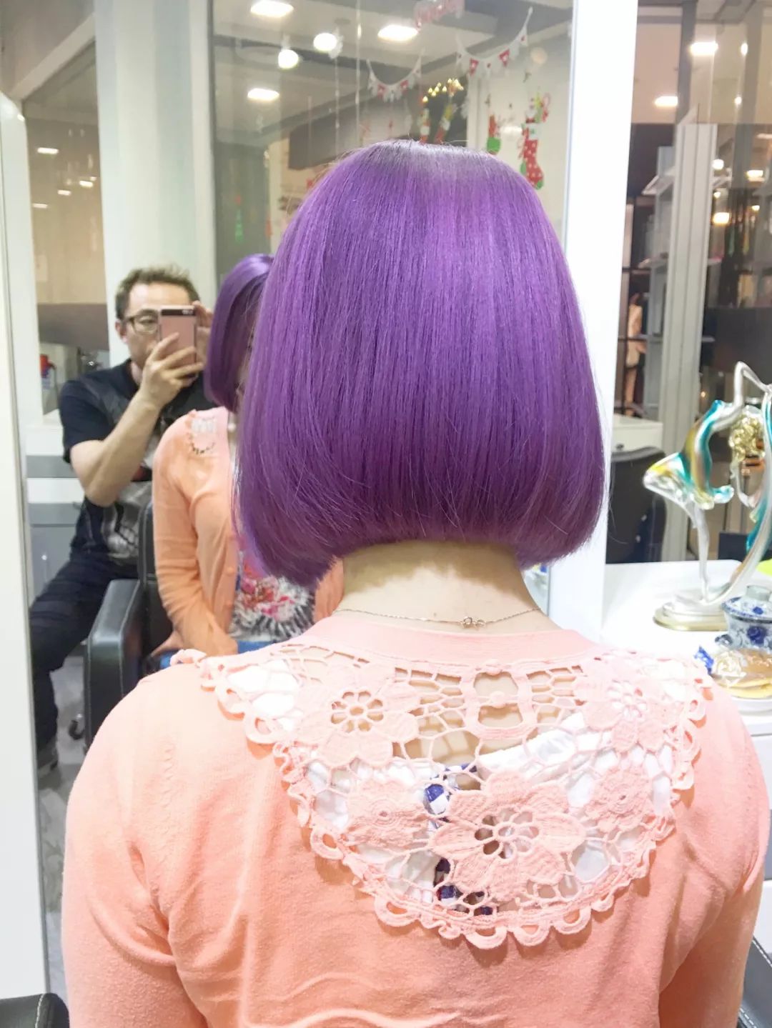 在我染发的同时,还有一位仙女染了一个全头的紫色!!!谁让人家又白颜值又高呢,就是任性~~紫外光色,2018年真的会霸屏哦!