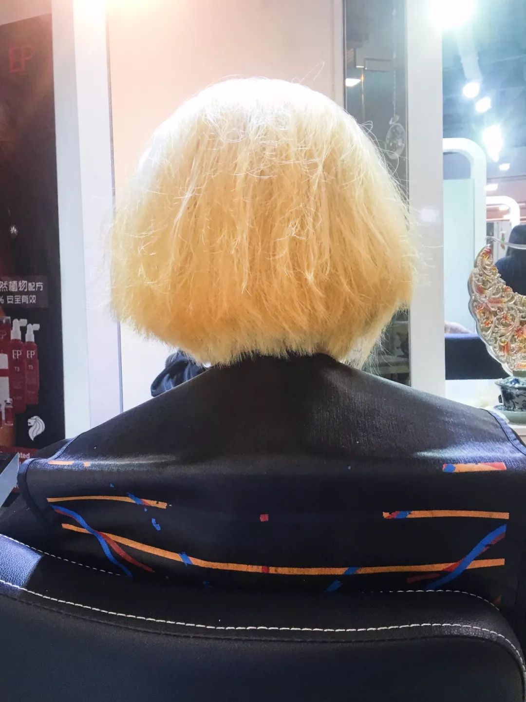 漂染两次之后,就变成了下面这样的淡金色,漂发大约用了1.5个小时。