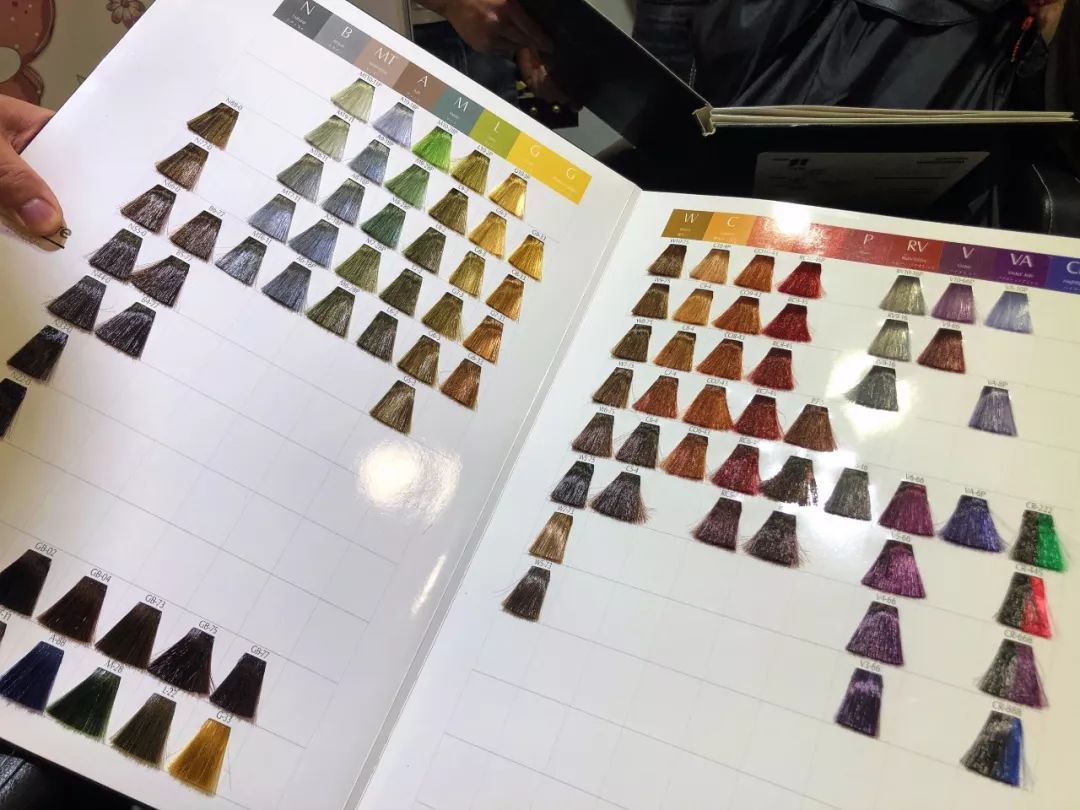 一边漂发一边和Mike沟通选色,色板上的颜色很全,一不小心又相中了几个绿色和红色,嗯,下次再来剁手😂😂。。。。