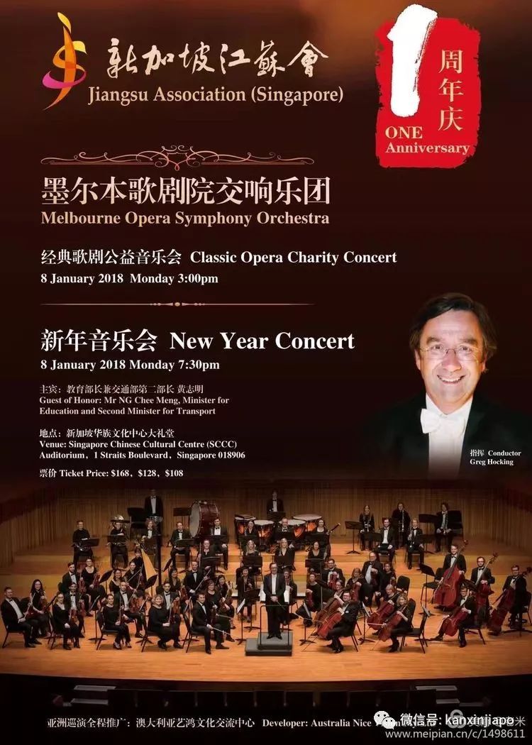 江苏会特别邀请了墨尔本歌剧院交响乐团来到本地,呈献两场音乐会——下午是经典歌剧公益音乐会,邀请了多家福利公益机构的义工、工作人员前来观赏,表达对他们的敬意。晚上的新年音乐会,教育部长兼交通部第二部长黄志明是主宾。